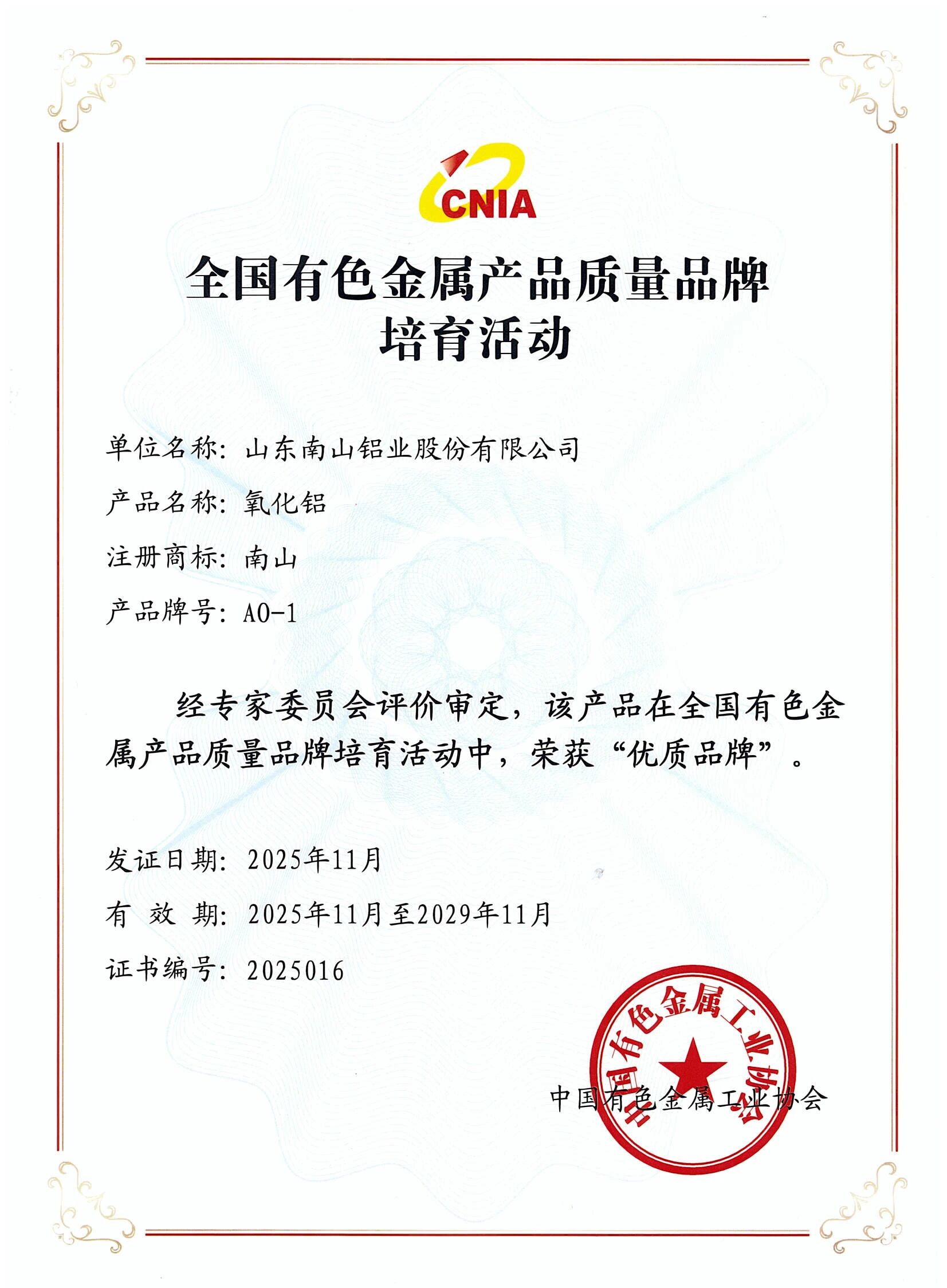 近日,中国有色金属工业协会公布2024-2025年度产品质量品牌评价结果,南山铝业(股票代码:600219)生产的“南山”牌氧化铝产品荣获“优质品牌”称号。这既是对公司长期坚持“质量强企”战略的权威认可,也是其推动行业向绿色化、智能化、高端化发展的具体体现。