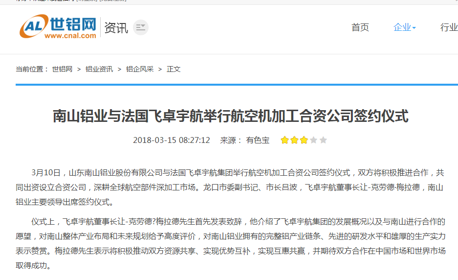 南山铝业锻造公司与法国赛峰起落架系统有限公司签署起落架锻件供货合同-大众日报